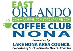 The Lake Nona Area Council is a joint group consisting of the East Orlando Chamber of Commerce and the St. Cloud Greater Osceola Chamber of Commerce. It is the goal of this group to bring together business representatives to discuss topics and information that affect both areas at the monthly Coffee Club Nona.