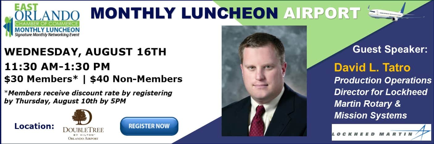 The Monthly Luncheon is a crowd favorite and we continue to focus on bringing you the Central Florida keynote speakers and topics you want to hear, right here in East Orlando. No need to drive across town, we’re bringing them to you! Grow your business by connecting with influential business leaders from the community while enjoying a fantastic meal!