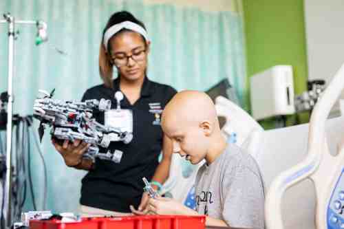 The program, which began in August 2018, is comprised of more than 50 UCF faculty members. Student researchers, postdoctoral scholars, and dozens of student interns work closely with physicians to deliver daily STEM instruction to hospitalized patients using high-tech-like robots, immersive virtual reality telepresence, 3D printers and MakerSpaces to deliver lessons that range from basic computer programming to learning about undersea worlds. The program goes above and beyond by personalizing the lessons based on a child’s specific interest areas, incorporating themes like superheroes, animals or sports to keep their interest and bring excitement into their lives during a rough time.