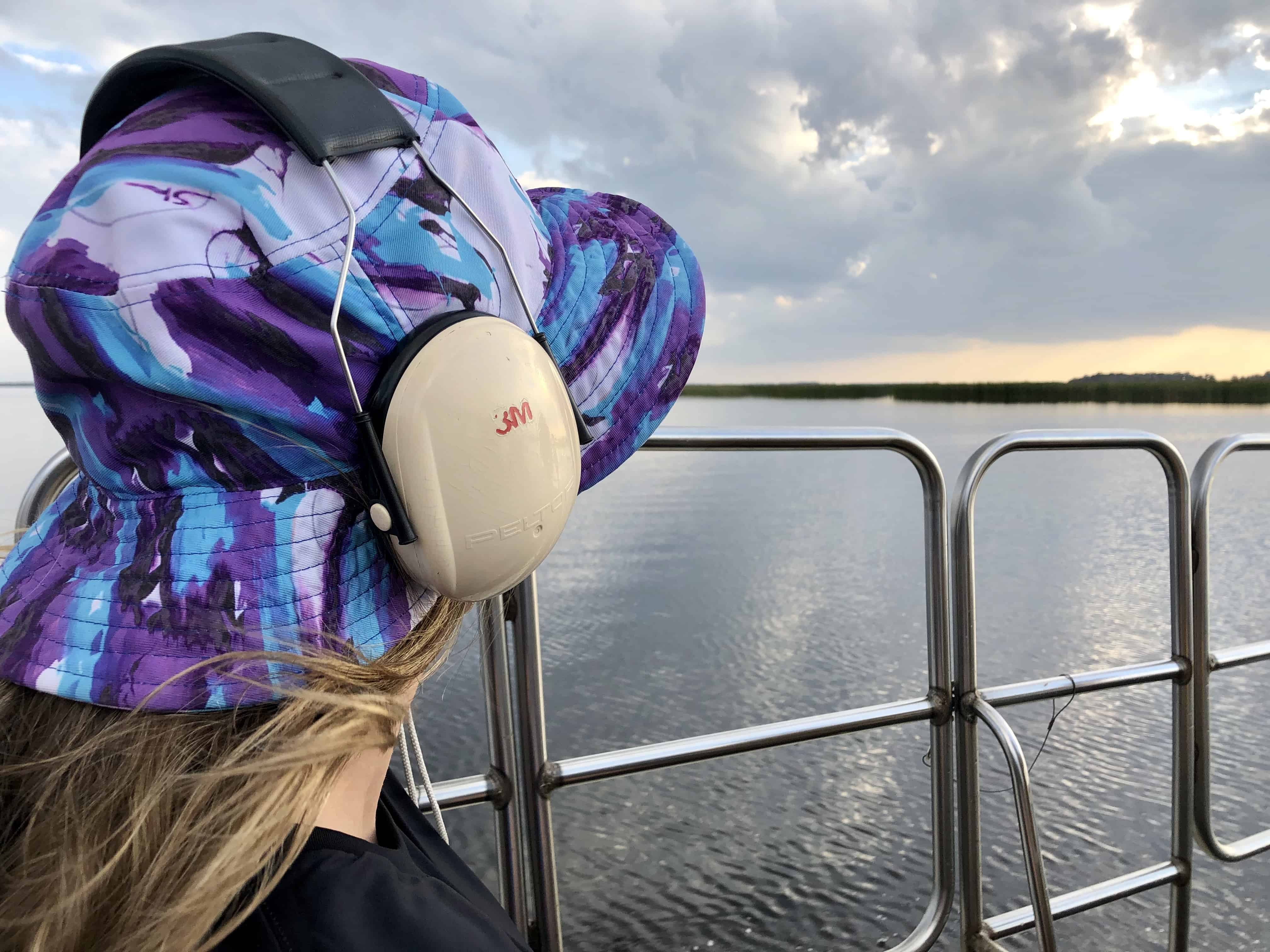Our group was called to the dock to get ready for our trip. We made our way down the lengthy, winding dock to reach the area where all of the airboats were waiting. As our group of about 20 stepped upon the boat, we grabbed pairs of headphones to protect our ears from the loudness of the boat. We were given some minor rules for our safety and in case of an emergency, and the next thing I knew, we were off.