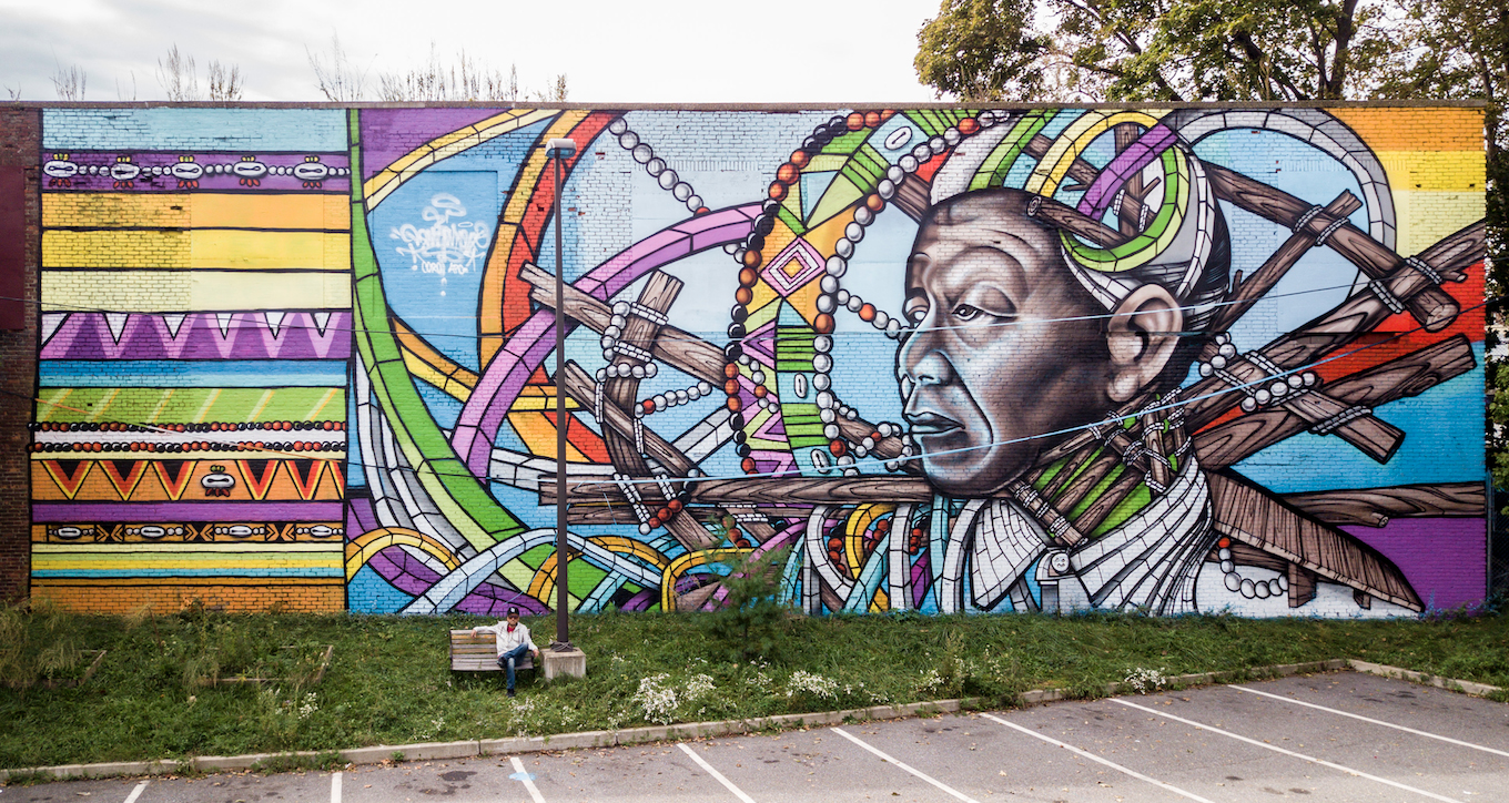 DR: My most challenging project was Cacique Guerrero in Lynn, Mass., for the Beyond Walls mural festival. The mural was 60’ h x 80’ w, in front of one of the busiest train stations in the city. I worked 12-14 hours a day for nine consecutive days. Extensive planning and long work hours were the key to producing this massive work of art. All the hard work paid off when I was awarded the key to the city of Lynn, which honors all the effort put into this grand-scale public art piece.