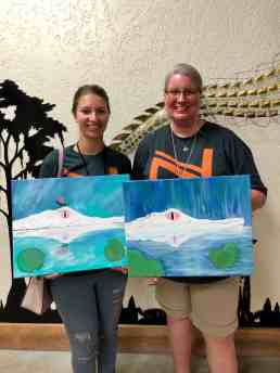 By the end of the event, I had turned it into a competition with Elaine…again…and was fairly proud of how my painting had turned out, especially with a significant increase in the level of difficulty from the sloth paint night. Like last month’s event, it included raffles for prizes and was entertaining for the whole family.